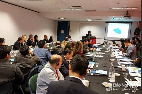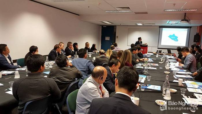 Đoàn công tác nghệ An giới thiệu với doanh nghiệp Úc về tiềm năng, cơ hội đầu tư. Ảnh Xuân Trường