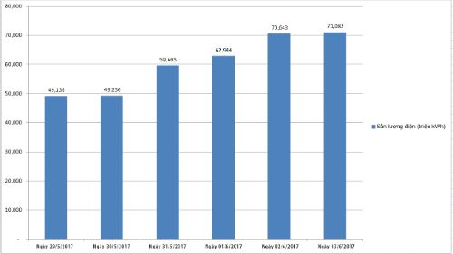 Riêng hệ thống điện miền Bắc đã ghi nhận những số liệu cao nhất trong lịch sử, đạt ngưỡng 290 triệu kWh vào ngày thứ Sáu tuần trước, tăng 10% so với cùng kỳ năm 2016.