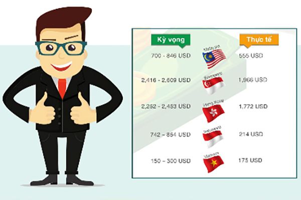 Tuy nhiên, mức độ chênh lệch giữa kỳ vọng mức lương và thực tế tại Việt Nam vẫn thấp hơn nhiều so với các quốc gia trong khu vực. Có đến 68% nhà tuyển dụng tại Malaysia nhận định sinh viên mới tốt nghiệp đang “đòi hỏi mức lương và đãi ngộ phi thực tế”. Mức lương trung bình mà nhà tuyển dụng nước này đề nghị dao động từ 500 đến 604 đôla trong khi mức kỳ vọng của người mới tốt nghiệp lên đến gần 850 đôla.