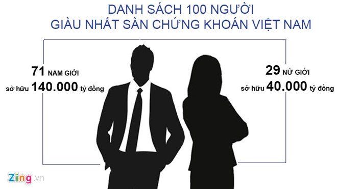 Nếu mở rộng phạm vi khảo sát thì có tới 60 nữ đại gia sở hữu khối tài sản lớn hơn 100 tỷ đồng. Danh sách này chưa kể tới các nữ doanh nhân, đại gia mà doanh nghiệp của họ chưa niêm yết trên sàn chứng khoán.