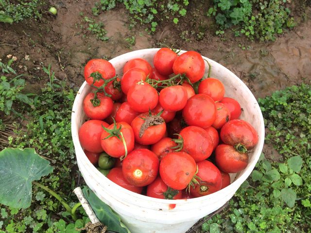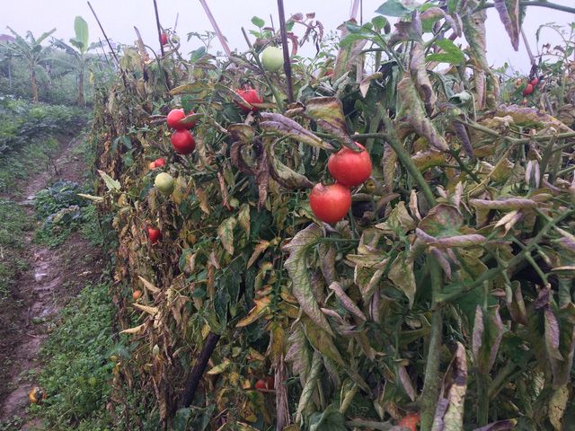 Người dân trồng cà chua đang hái về nấu cho lợn